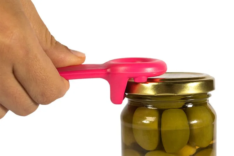 Através de um manuseio sem complicações, evita esforços excessivos e auxilia na retirada do vácuo em tampas de alimentos em conserva de forma prática e segura. Feito de plástico bastante resistente, possui alta durabilidade, é fácil de limpar e está disponível nas cores preto, bordô, azul, rosa, amarelo e branco.