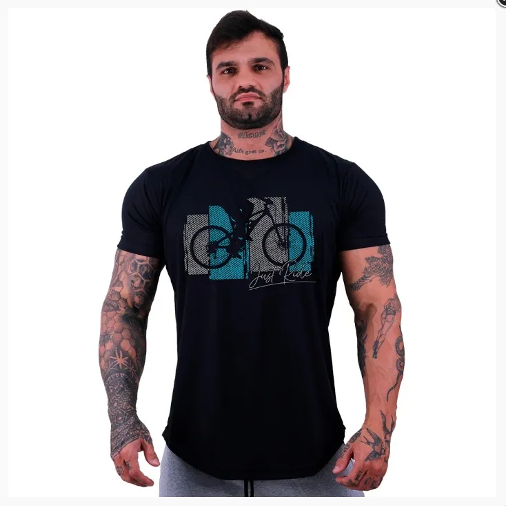 A camiseta masculina fitness Longline Mountain Bike Just Ride é confeccionada em um tecido de alta qualidade. Ele é leve, macio e proporciona excelente respirabilidade, mantendo o corpo seco e confortável durante os treinos mais intensos.
