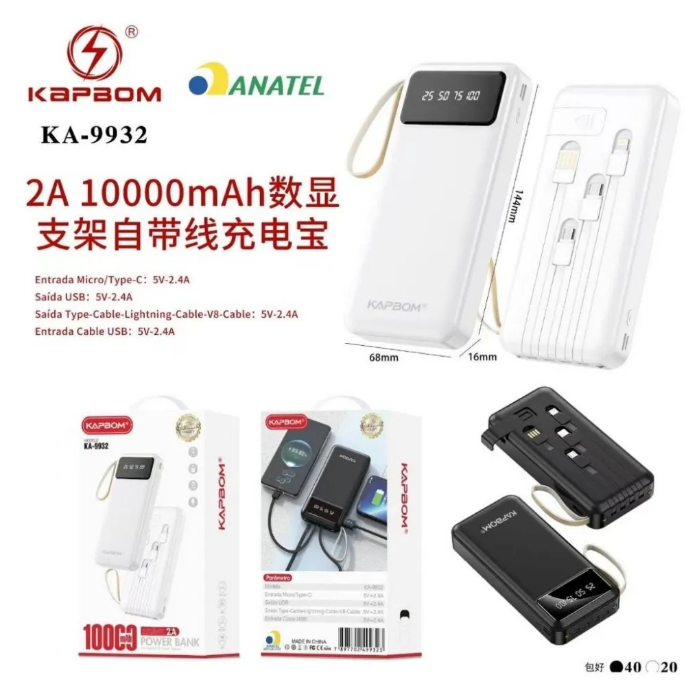 Carregador Portátil kapbom ka9932 10000mah Carregamento Super Rápido