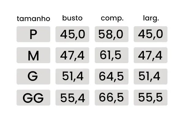 *As medidas da peça podem variar cerca de 2 cm para mais ou para menos.